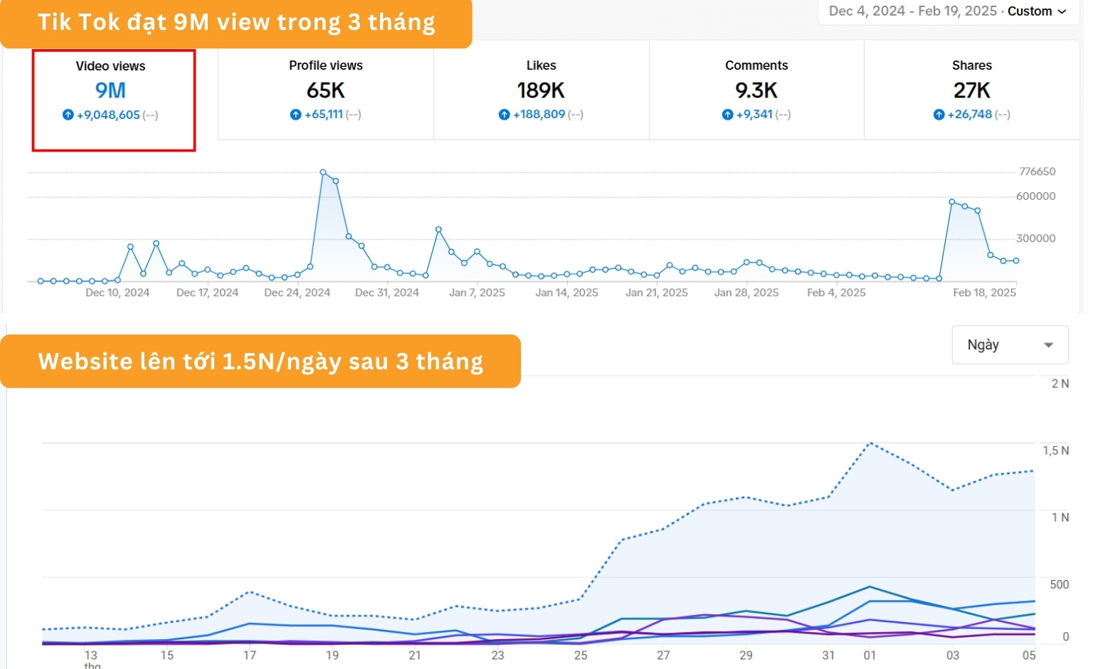 - Website khách hàng đã đạt lên tới 1.5N lượt truy cập/ ngày khi nhu cầu tìm kiếm liên quan đến tuyến nội dung đạt đến cao điểm cùng 28N người dùng mới.